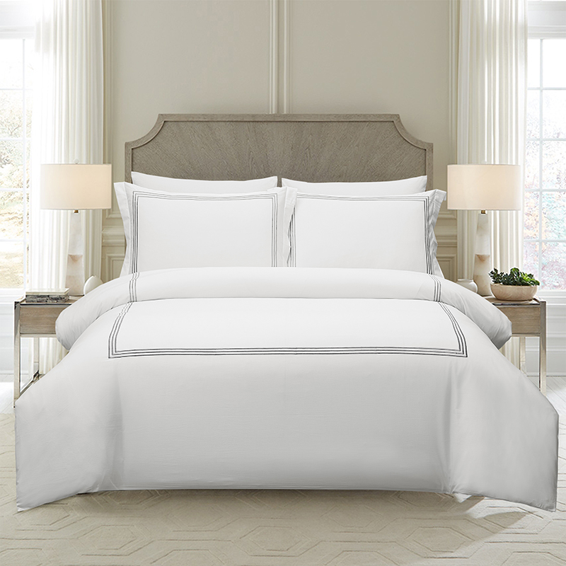 Forcast Spring 5 Star Hotel Luxury 100% cotton 300TC 1cm Stripe Embroidery Bedding Sheet Set